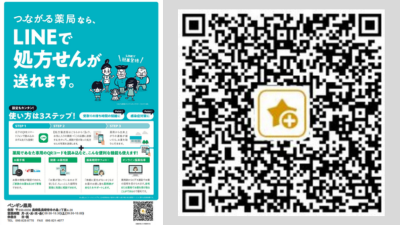 スマートフォンでQRコードを読み取ってください。LINEの「つながる薬局」でペンギン薬局を選択。